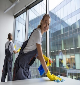 Streifenfreie Reinigung von Fenstern, Glasfassaden, Wintergärten und Schaufenstern.